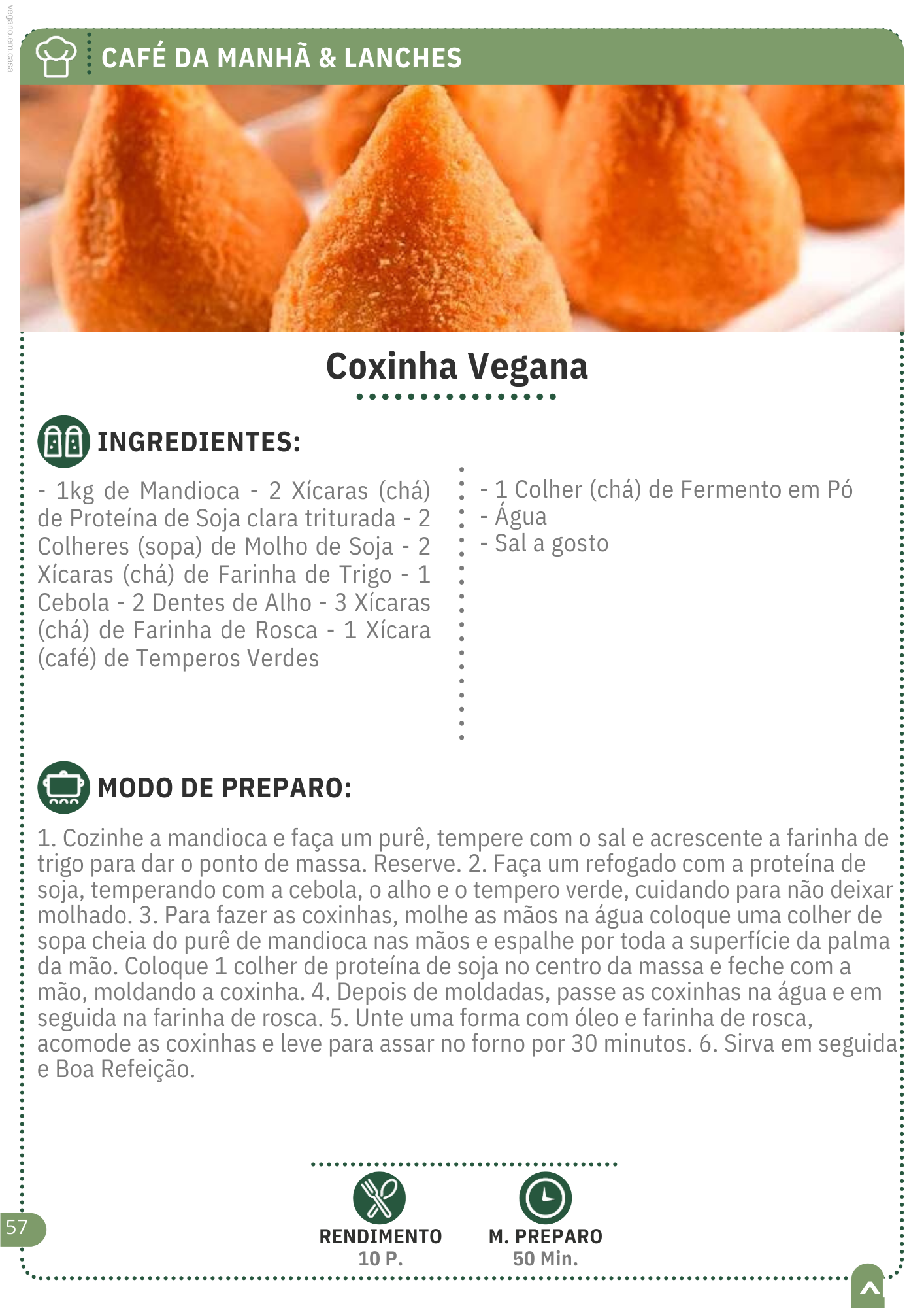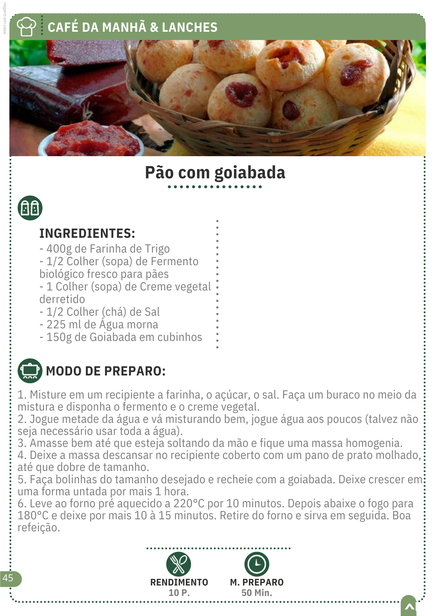 ✔️ Rendimento e tempo médio de preparo em todas as receitas
