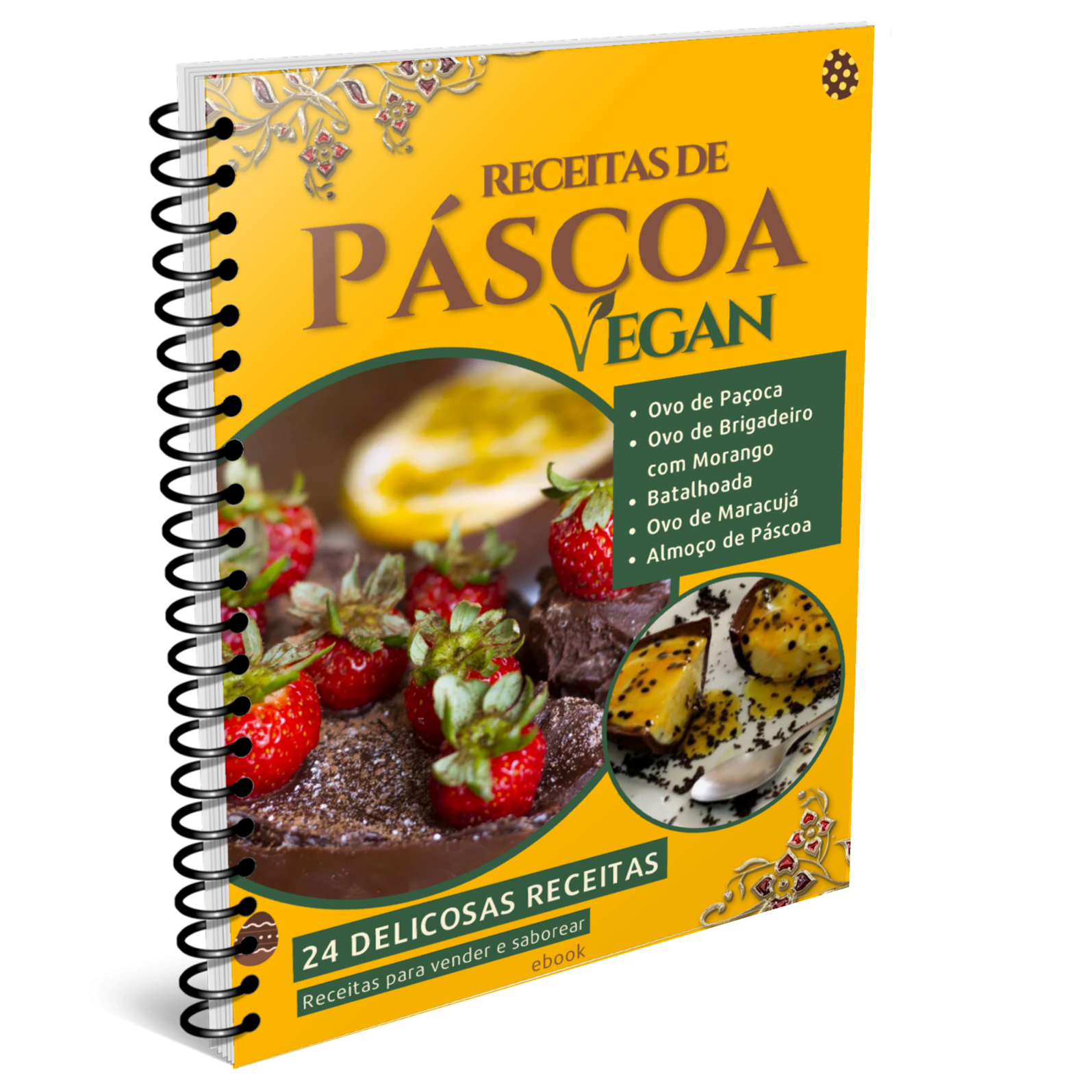 • Conteúdo: 24 receitas veganas para a Páscoa, incluindo ovo, doces e sobremesas especiais